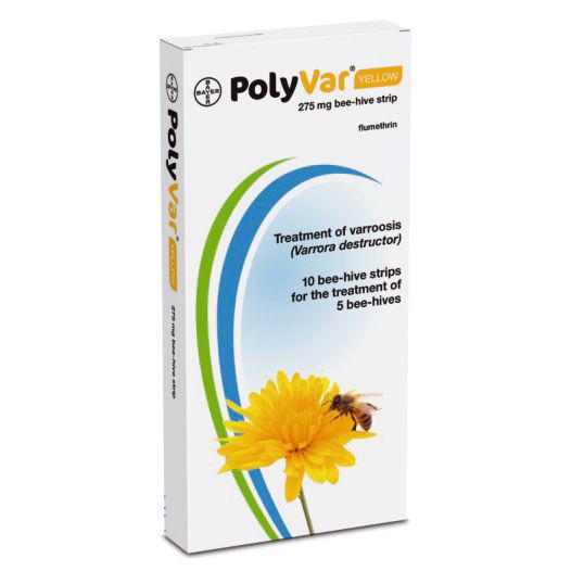 There is another product licenced for varroa treatment in Ireland called Polyvar yellow. Each strip contains 275mg of flumetherin. They are yellow plastic strip with 15 holes per strip that are put on at the entrance of the hive and as the bees come into the hives the flumetherin gets on to the bees and is spread around the hive.