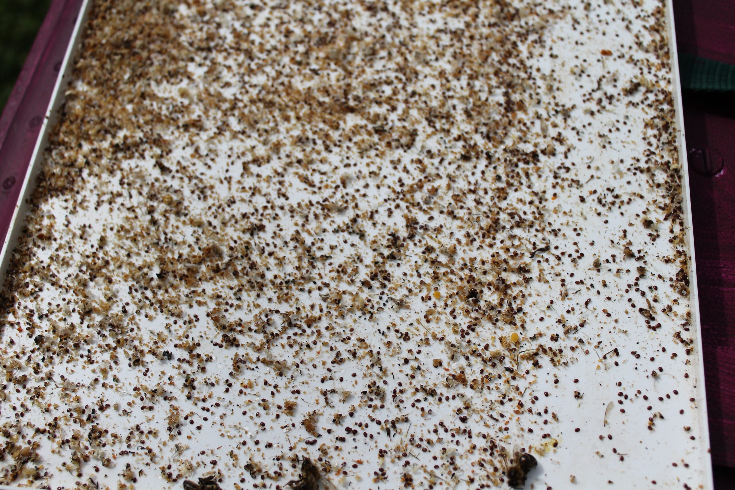 To use before any treatment is used place the monitoring board in and return after three or four days. Remove the board and count the mites that have landed on the board, Divide this number by the number of days and this gives you the DAILY NATURAL MITE DROP.